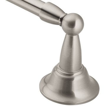 This MOEN Sage 24 in. Zinc Single Towel Bar in Brushed Nickel is easy to install with the included template and hardware. The sturdy bar is designed to hold up to 30 lb. for your convenience.