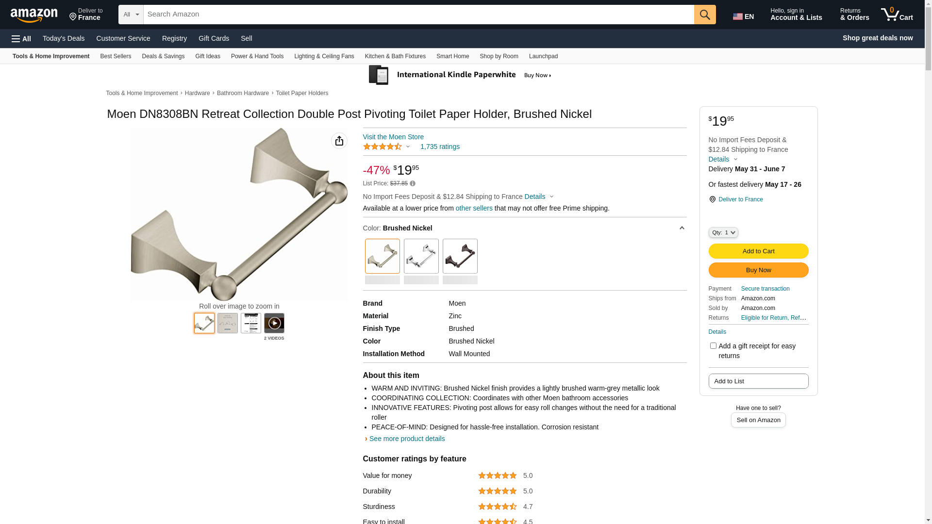 | Feature | Bath Accessory Type: Toilet Tissue Holder: Color Family: Nickel |