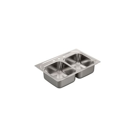 Moen G182133Q 1800 Series 33 inch X22 inch Stainless Steel 18 Gauge Double Bowl Drop In Sink