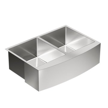 Moen G18220 1800 Series Stainless Steel Apron Front Farmhouse 18 Gauge Double Bowl Sink, Stainless