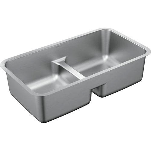 Moen G18252 1800 Series 32" x 18" Steel 18 Gauge Double Bowl Sink Featuring Low-Profile Divide, Stainless
