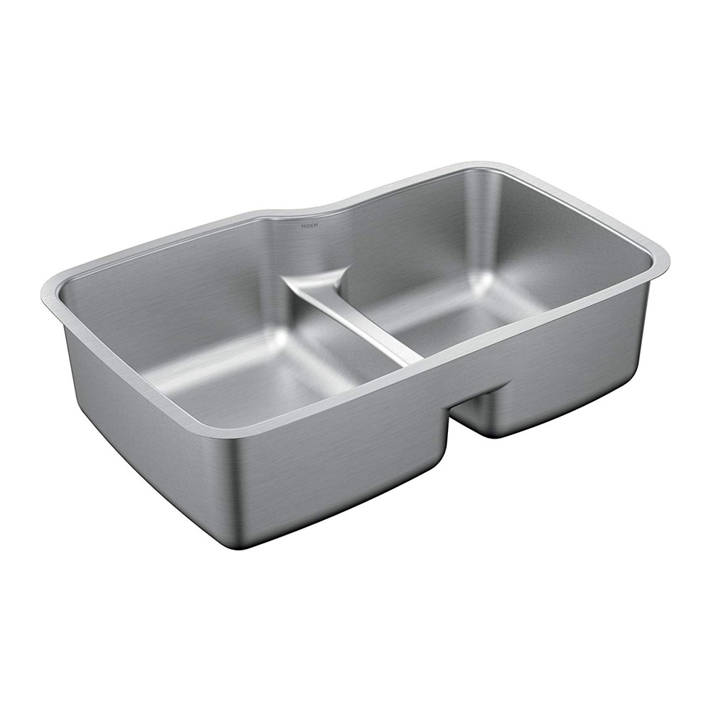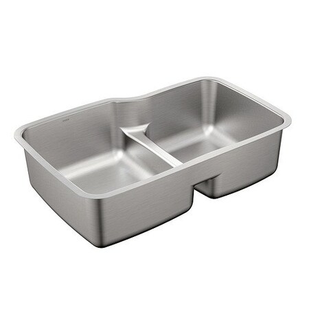 Moen G18253 1800 Series 32" x 20.5" Steel 18 Gauge Double Bowl Sink Featuring Low-Profile Divide, Stainless