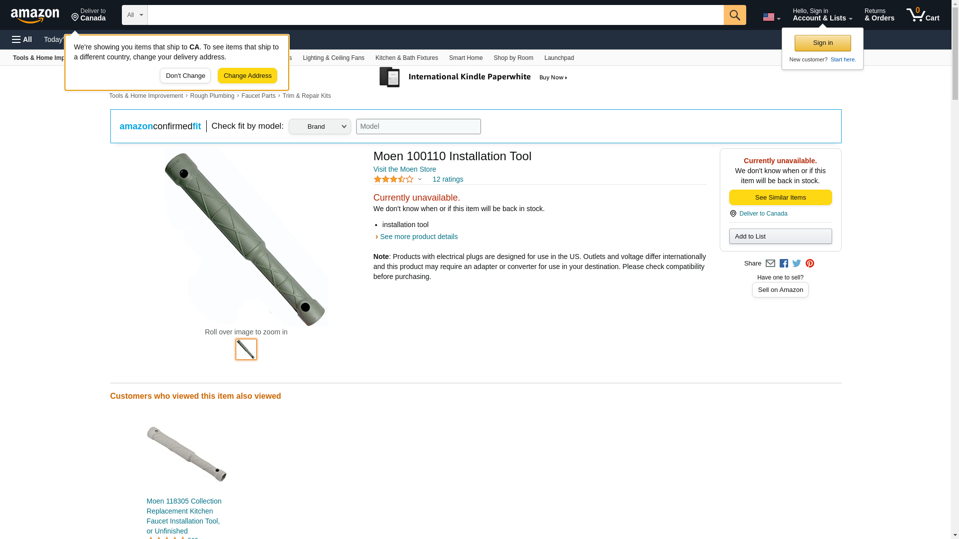 Moen 100110 Installation Tool