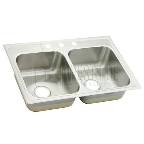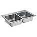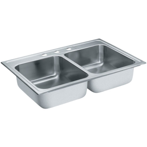Moen 22212 Camelot 3 Hole Stainless Steel 20 Gauge Double Bowl Drop In Sink, Stainless