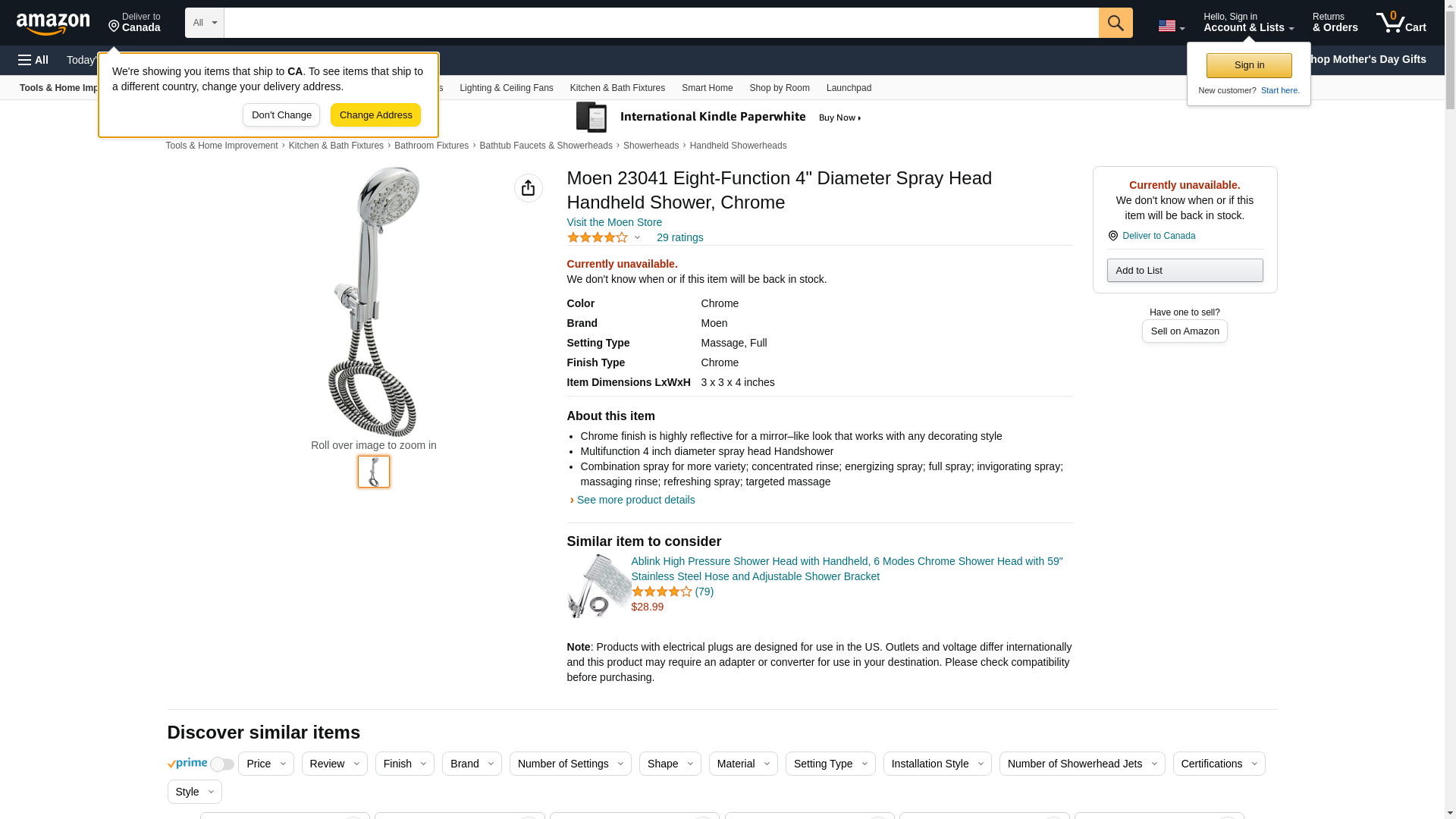 Moen 23041 Eight-Function 4" Diameter Spray Head Handheld Shower, Chrome
