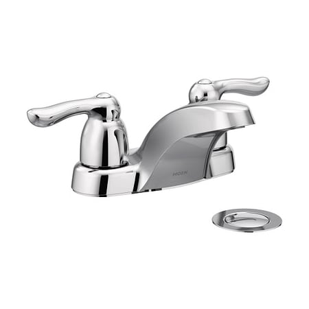 Easy to install, this MOEN Chateau faucet is a great addition to your bathroom. It features 4 in. centerset design, deckplate mount and 1/2 in. IPS connections. This 2-handle faucet includes ceramic disk valves, a metal drain assembly and a conventionally styled low-arc spout.