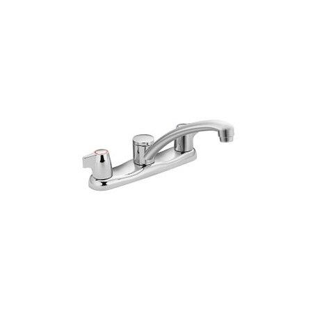 ADA Compliant: 1, Commercial: 1, EPA WaterSense Approved: 0, Faucet Centers: 8.00, Faucet Holes: 2, Filtering: 0, Handle Type: Lever, Handles Included: 1, Mounting Type: Deck Mount, Number of Handles: 2, Pullout/Pulldown Spray: 0, Side Spray Included: 0, Soap Dispenser Included: 0, Spout Height in Inches: 5.13, Spout Reach in Inches: 9.25, Touch to Operate: 0, Touchless Operation: 0