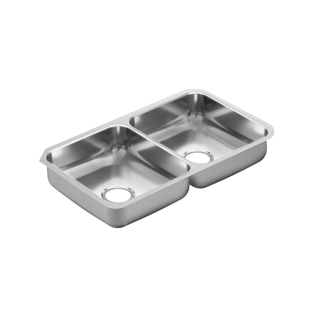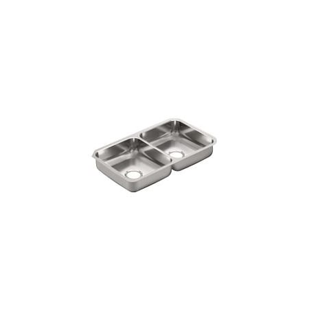 Moen G20214 2000 Series 20 Gauge Double Bowl Undermount Sink, Stainless Steel
