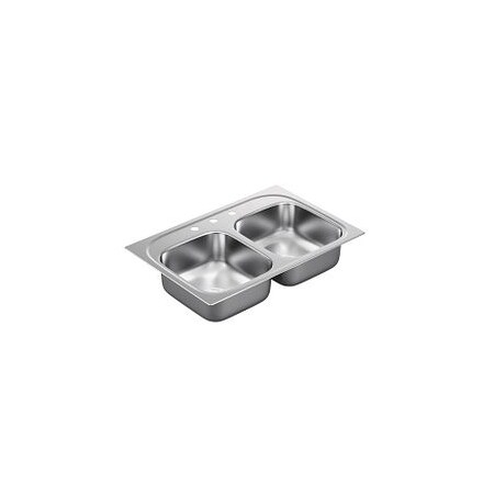 Moen G202153 2000 Series 20 Gauge Double Bowl Undermount Sink, Stainless Steel
