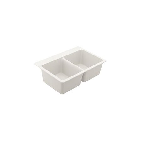 Moen Host White Granite 33-Inch Wide x 9.5-Inch Deep Dual Mount Double Bowl Kitchen Sink, GGW3028B