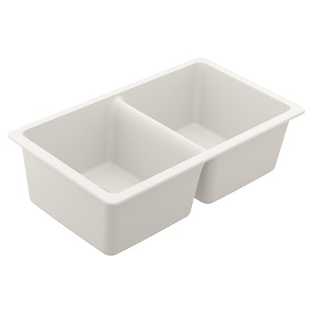 Moen - GGW4012B - 33-Inch Wide x 9.5-Inch Deep Undermount Granite Double Bowl Kitchen Sink, White