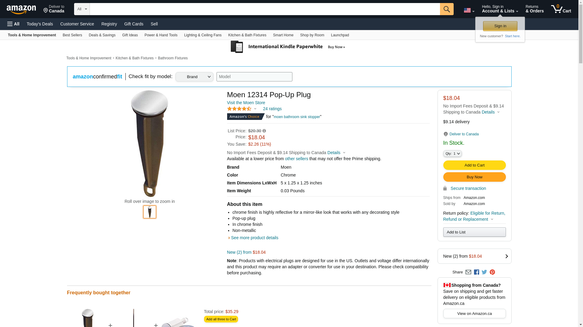 Moen 12314 Pop-Up Plug