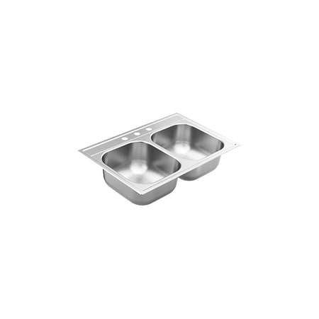 Moen GS202133Q 2000 Series 33 inch X22 inch Stainless Steel 20 Gauge Double Bowl Drop In Sink