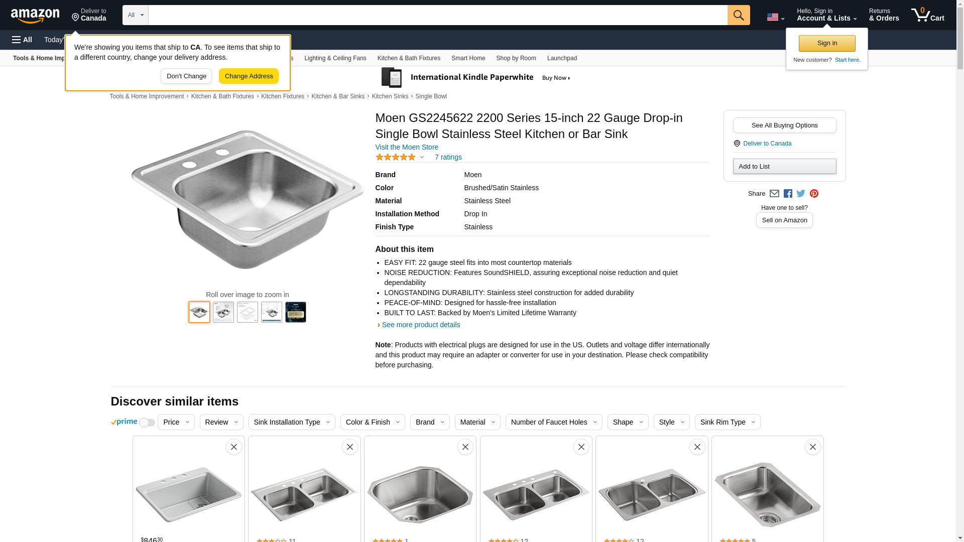 Moen GS2245622 2200 Series 15-inch 22 Gauge Drop-in Single Bowl Stainless Steel Kitchen or Bar Sink