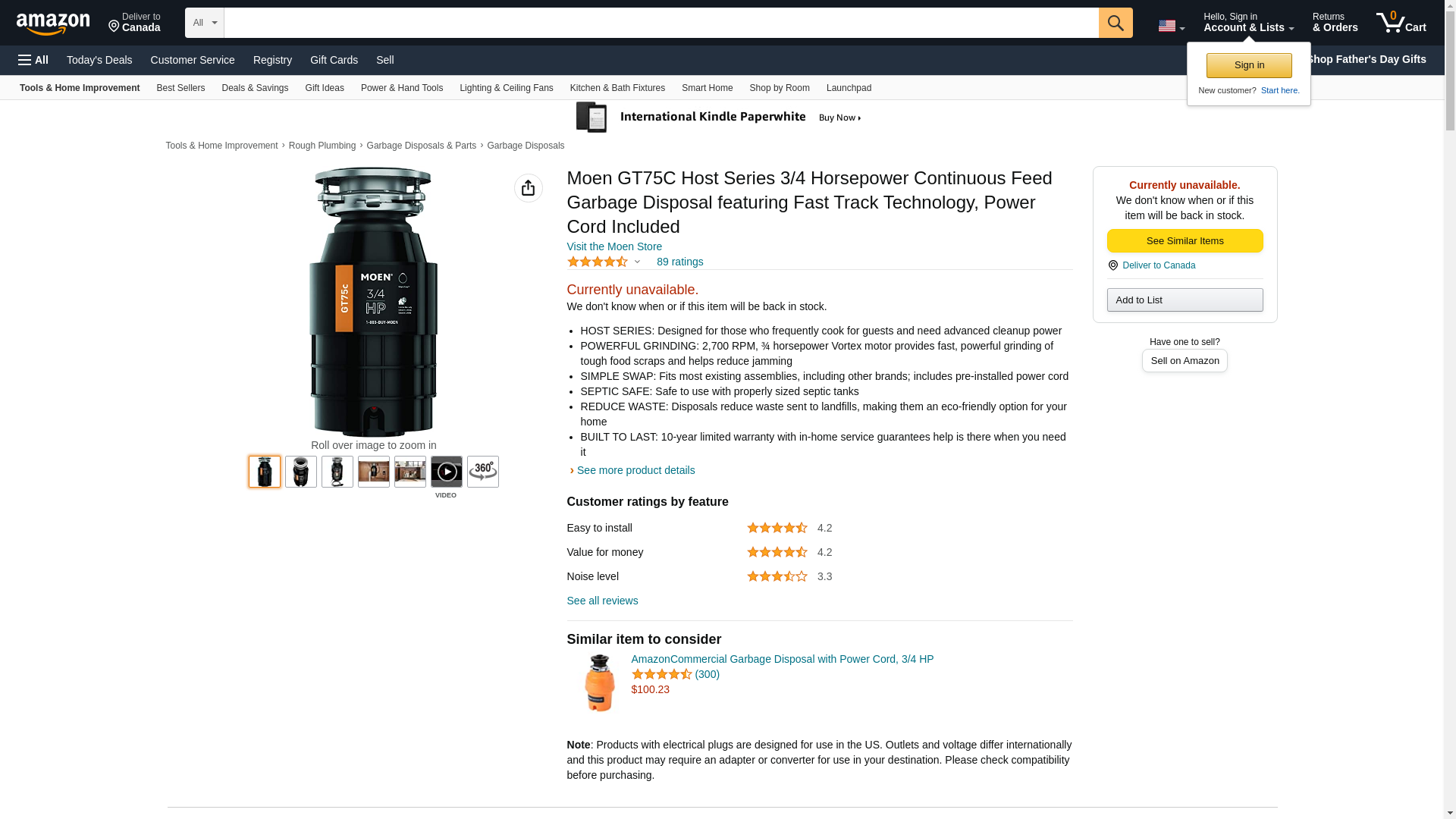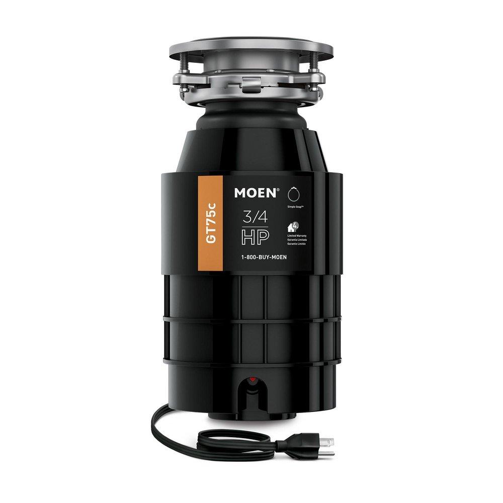 Moen GT75C Host Series 3/4 Horsepower Continuous Feed Garbage Disposal featuring Fast Track Technology, Power Cord Included
