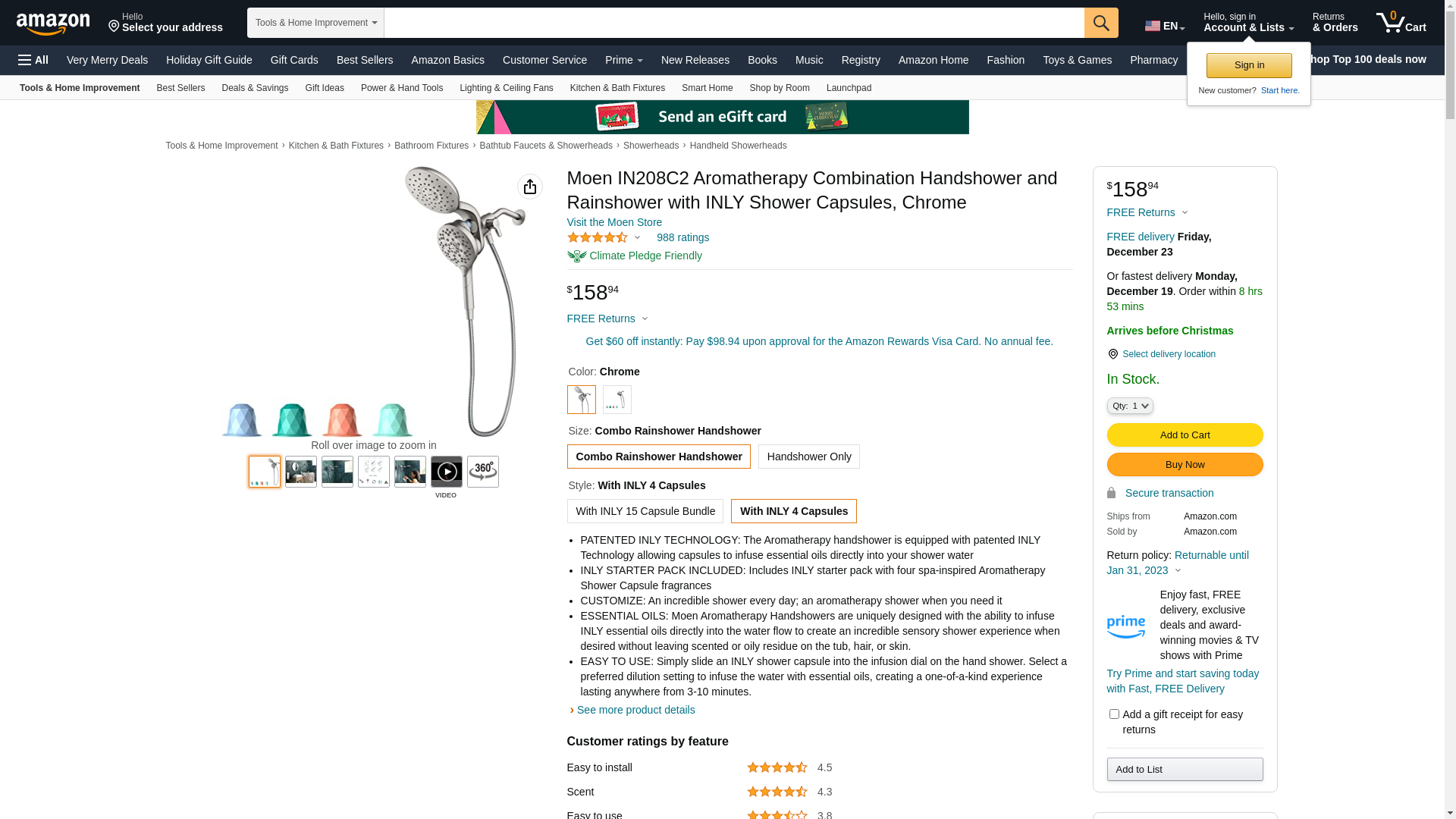 Moen IN208C2 Aromatherapy Combination Handshower and Rainshower with INLY Shower Capsules, Chrome