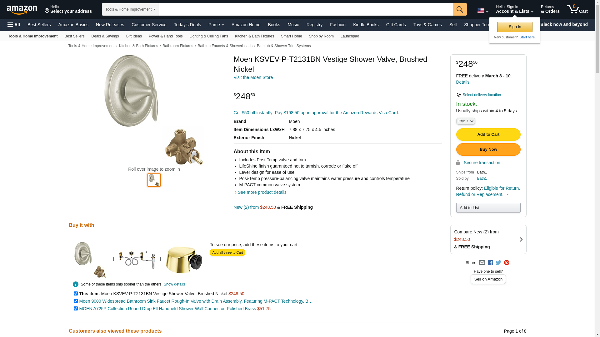 Buy Moen Vestige Shower Valve in Brushed Nickel KSVEV-P-T2131BN online at best price on Bath1.com. Free Shipping On All Orders over $49.99.