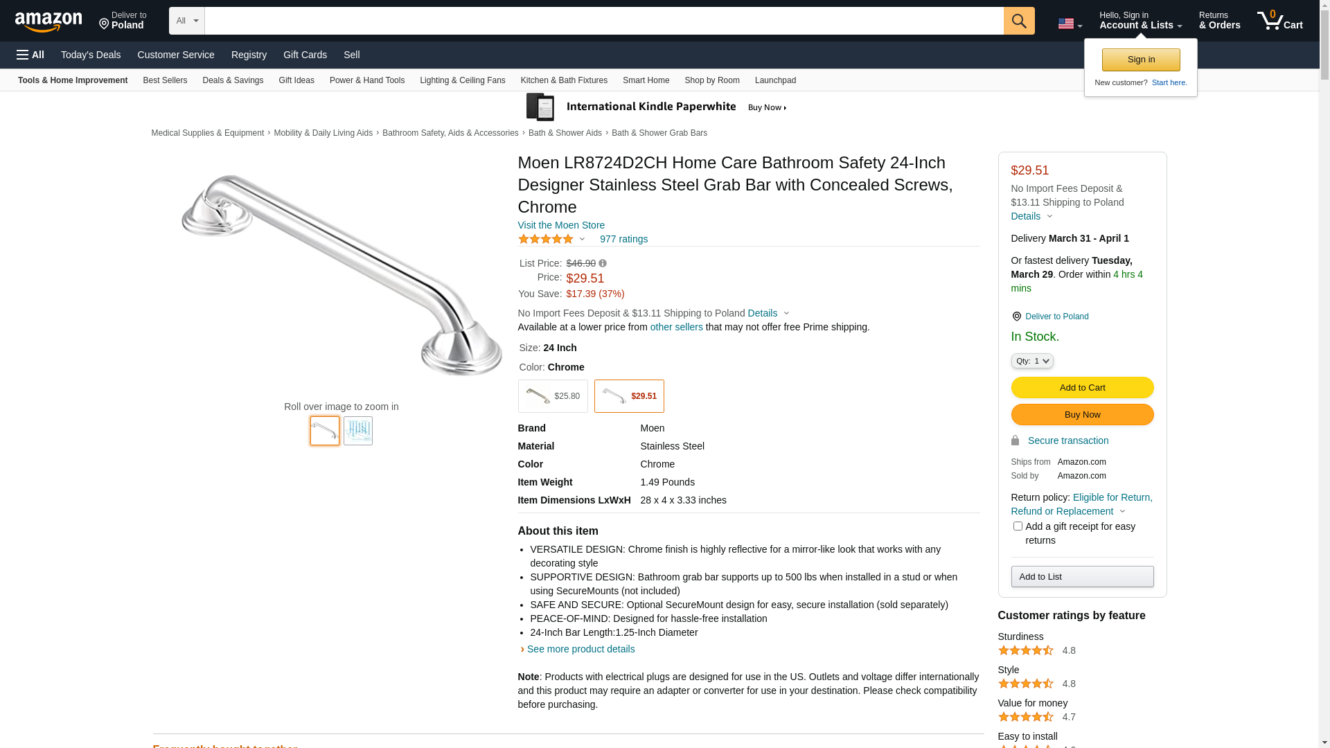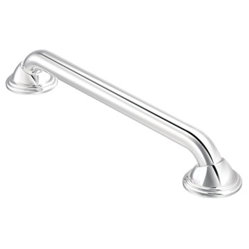 Moen Designer Grab Bars feature a sleek, uncomplicated style that accents any bathroom design while creating a safer, more comfortable bathroom experience. Moen's SecureMount technology allows for secure and lasting installation at any angle on the wall, with or without studs, for more flexibility while securely supporting up to 500 Lb. These grab bars also feature finger notches on the bar, providing a more stable hand placement. Length: 24 In. Diameter: 1-1/4 In. Finish: Chrome Finish Family : Capacity: 500 Lb. ADA Compliant: Yes Style: Installation: Concealed Screw