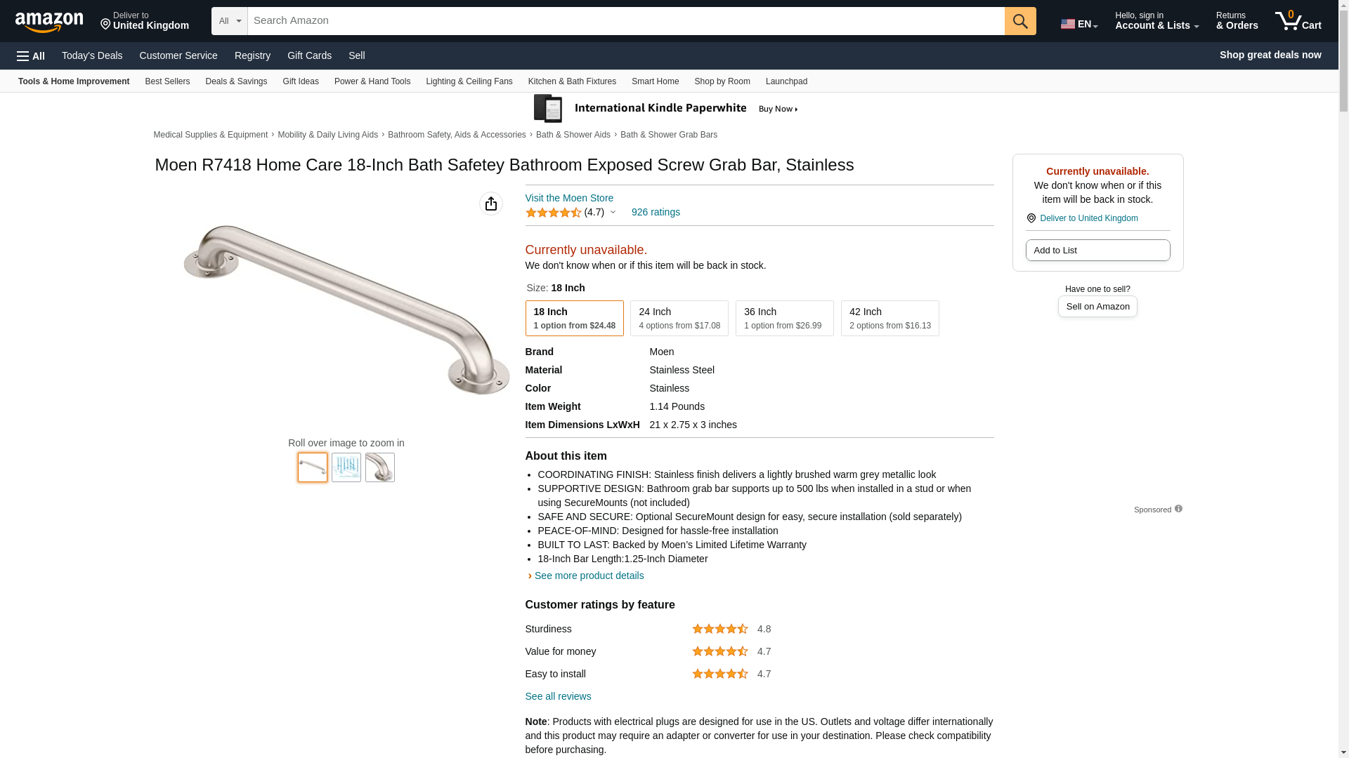 Moen R7418 Home Care 18-Inch Bath Safetey Bathroom Exposed Screw Grab Bar, Stainless