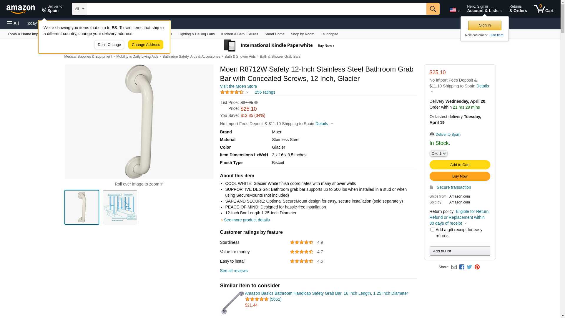 Moen R8712W Safety 12-Inch Stainless Steel Bathroom Grab Bar with Concealed Screws, 12 Inch, Glacier