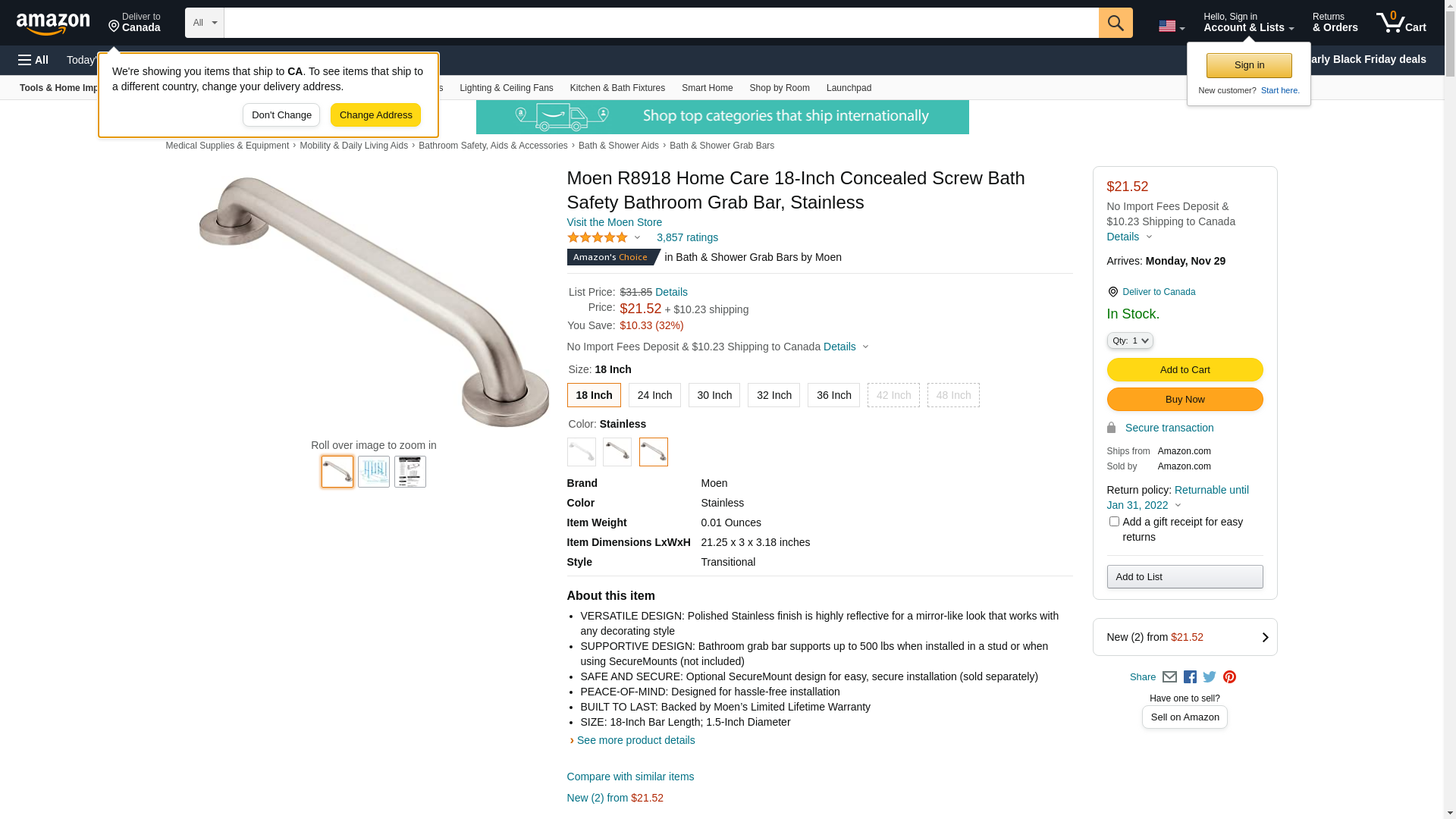 Moen R8918 Stainless 18-Inch Grab Bar. Stainless finish delivers a lightly brushed warm grey metallic look. Formed fr...