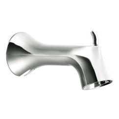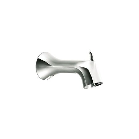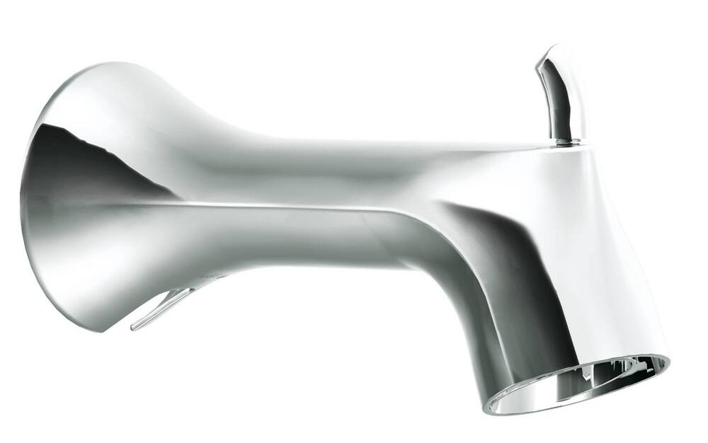 S11704 Finish: Chrome Pictured in Chrome Features: -Diverter spout.-Wall mount. Options: -Available in Chrome or Brushed Nickel finish. Construction: -Metal construction. Color/Finish: -LifeShine finish guaranteed on brushed nickel not to tarnish, corrode or flake off. Dimensions: -Tub spout length: 7.375''.-Overall dimensions: 3'' H x 3'' W x 7.125'' D. Collection: -Fina collection. Warranty: -Showhouse by Moen provides a lifetime limited warranty against leaks, drips and finish defects to the original consumer purchaser.