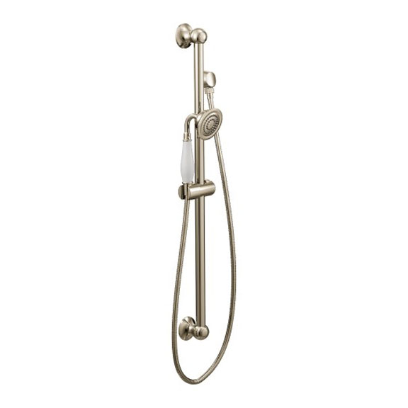 Moen S12107EPNL Weymouth Traditional Eco-Performance Handshower Handheld Shower with 30-Inch Slide Bar and 69-Inch Metal Hose, Polished Nickel