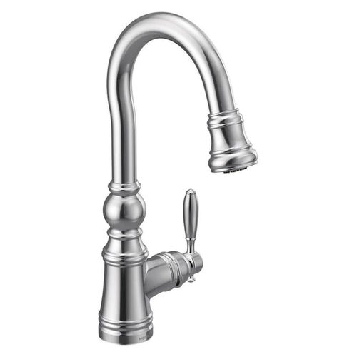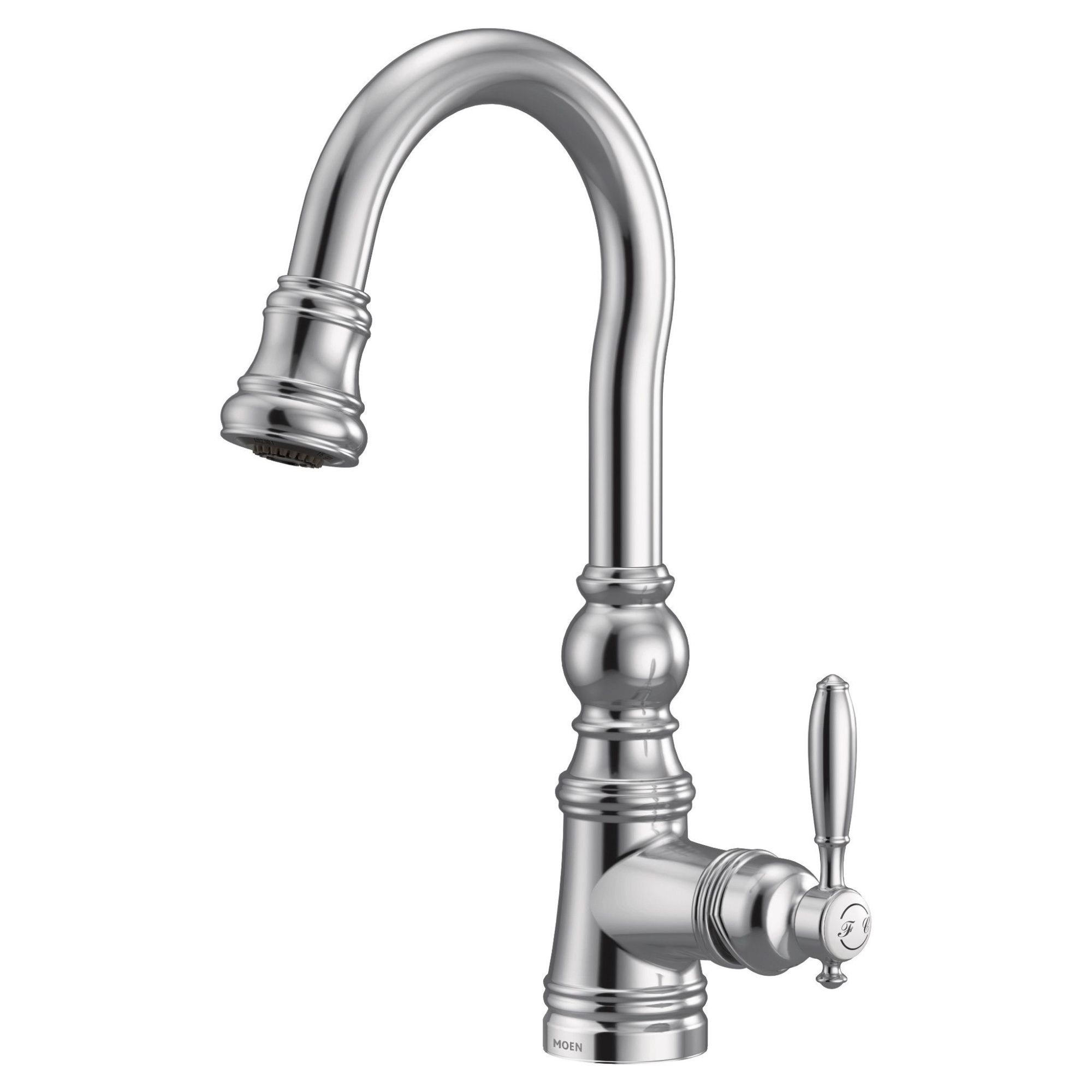 Moen S53004 Weymouth Shepherd's Hook Pulldown Kitchen Bar Faucet Featuring Metal Wand with Power Clean, Chrome