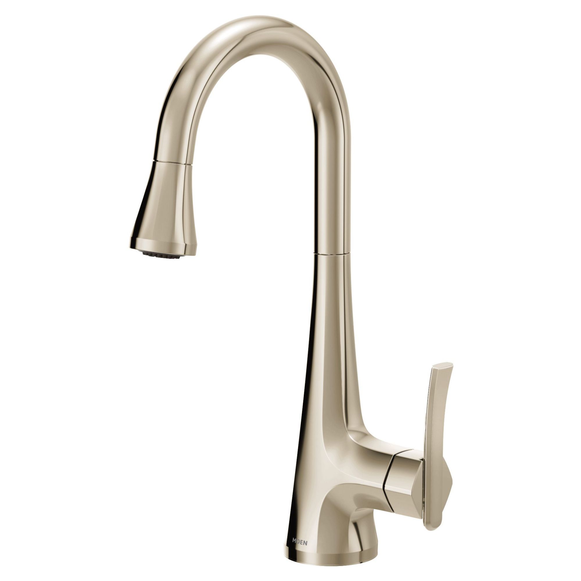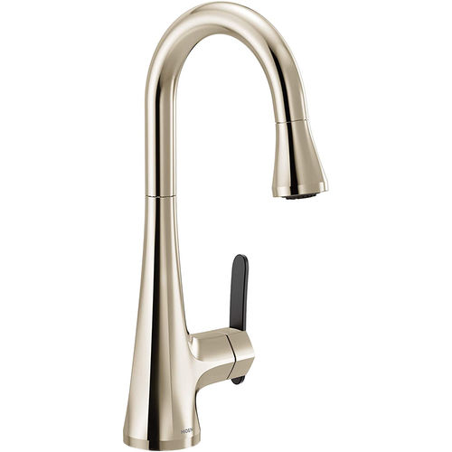 Moen S6235NL Sinema One-Handle High Arc Pulldown Bar Faucet featuring Power Clean and Reflex, Polished Nickel