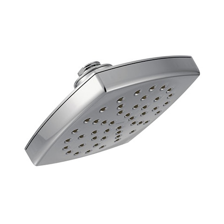 Crisp edges and uncomplicated style features give the Voss collection an ageless, yet fashion-forward, presence. Each silhouette brings a confident transitional style to the bath. This chrome one-function 6 in. Dia eco-performance rainshower showerhead was built to last by MOEN. Designed for use in your bath.
