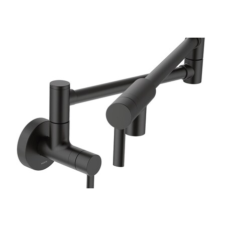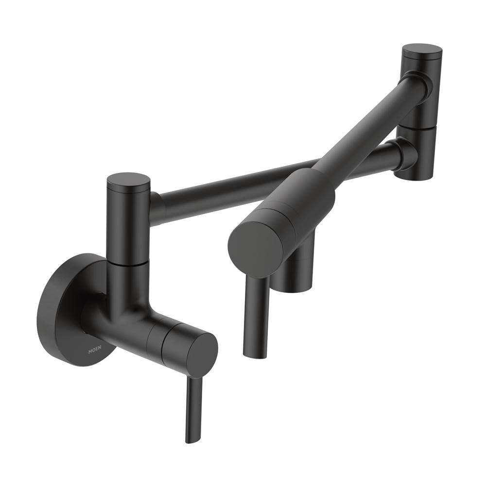 Moen Matte Black Modern Wall Mount Folding Swing Arm Pot Filler, Double Jointed Kitchen Stove Faucet, S665BL