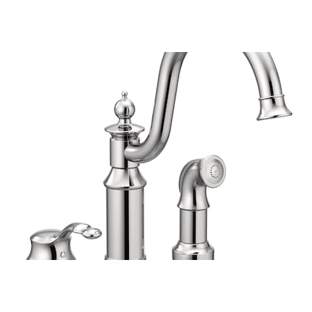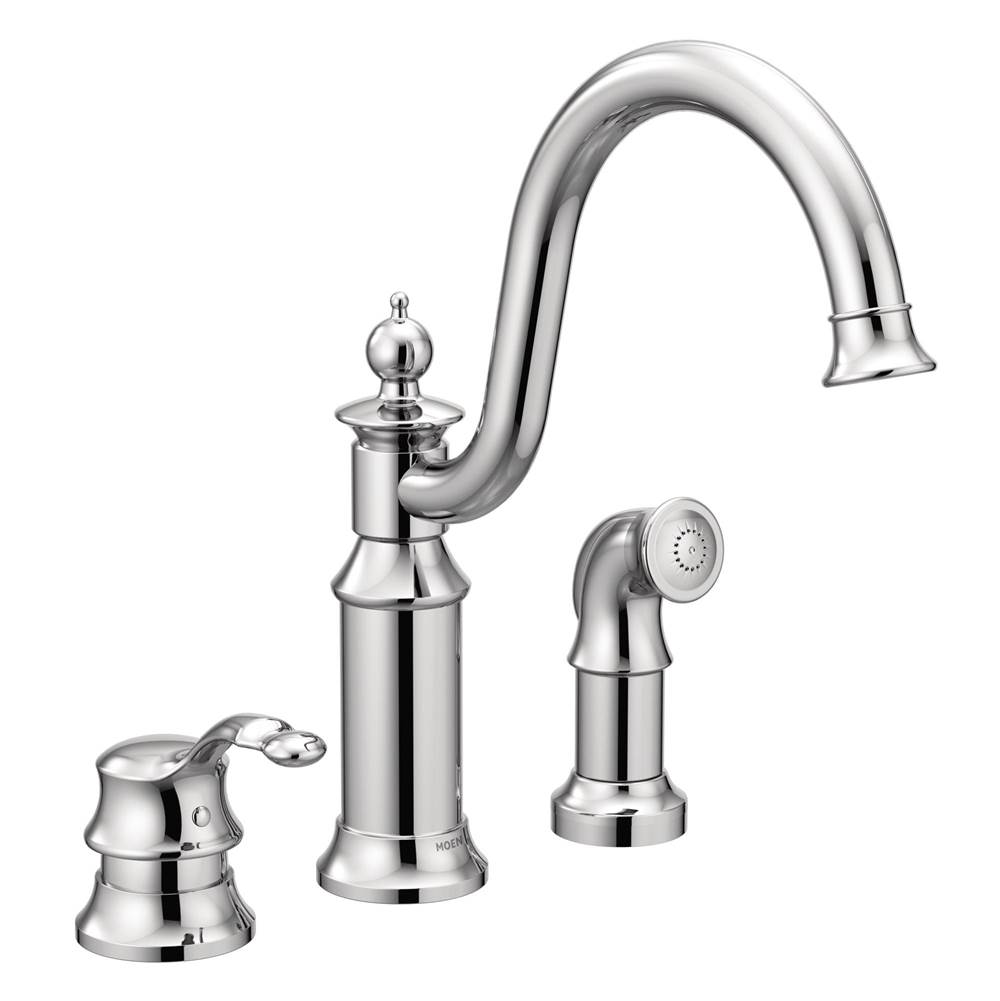 Vintage, farmhouse-fresh and full of character: the Waterhill collection of kitchen and bar/prep faucets from MOEN brings provincial elegance to today's more traditional homes. Period-era details such as a gooseneck spout, bridge design and top finial combine to create an authentic feel of the past with contemporary functionality. Durably crafted from metal and available in a variety of finishes to suit your decor, the Waterhill Standard Kitchen Faucet features a high-arc spout that provides generous clearance to fill pots and pans, while the single-handle design enables easy, one-handed operation, ideal for multi-tasking in the kitchen.