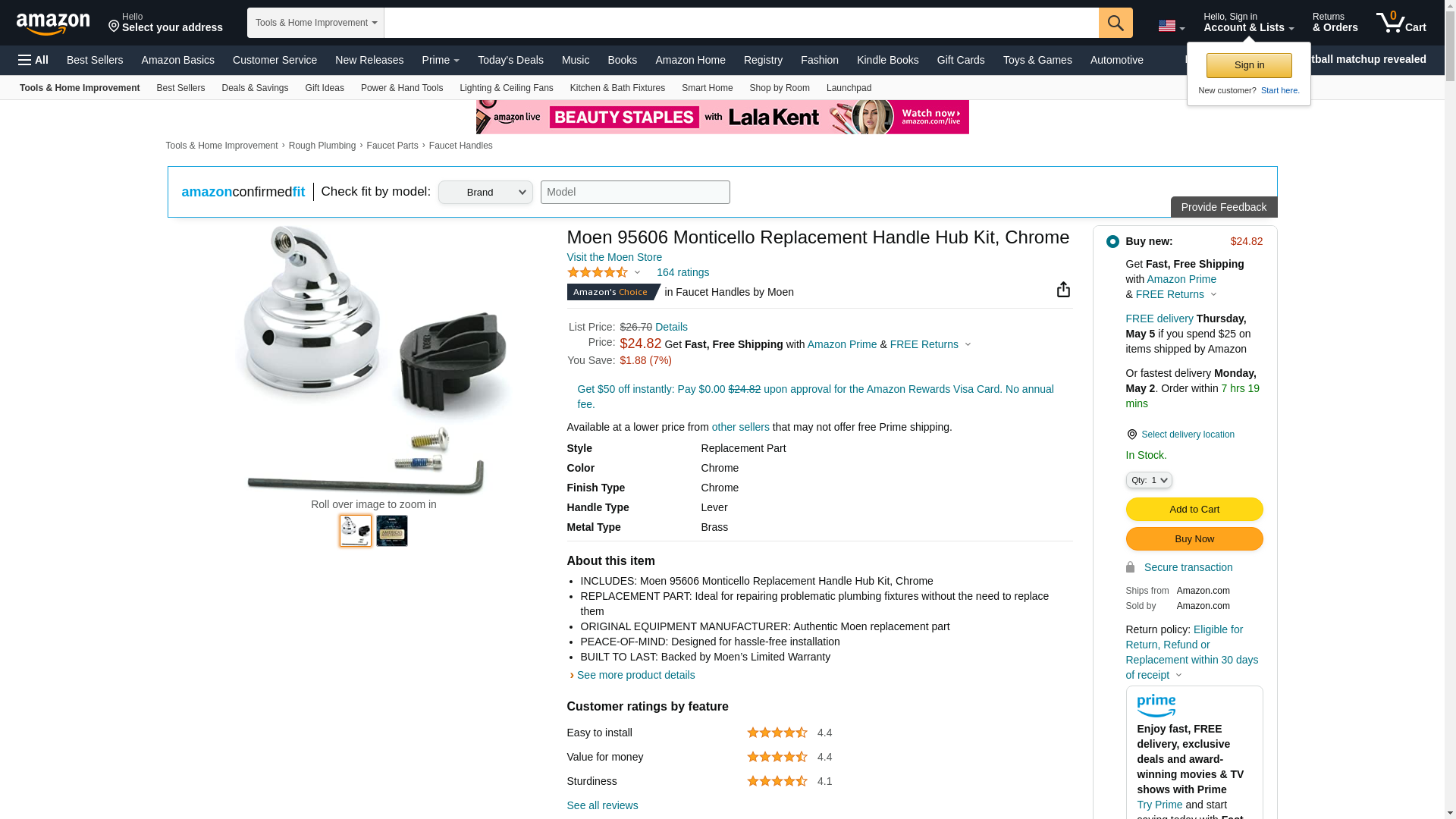 Sale price on the Moen 95606 Part Handle Hub Kit Chrome here with the PlumbersStock store - Moen faucets wholesale.