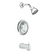 - Tub and Shower Package Includes Valve trim shower head shower arm and tub Spout