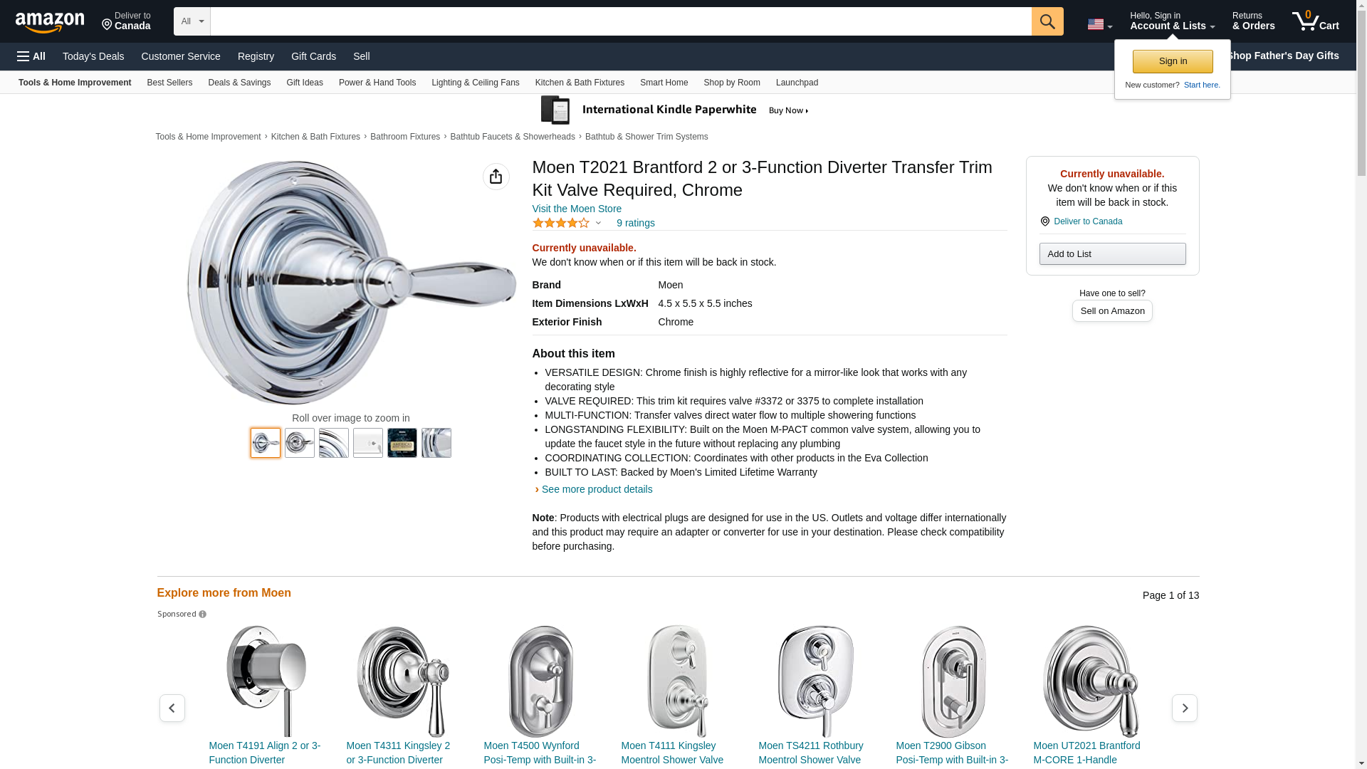 Moen T2021 Brantford 2 or 3-Function Diverter Transfer Valve Trim Kit Valve Required, Chrome