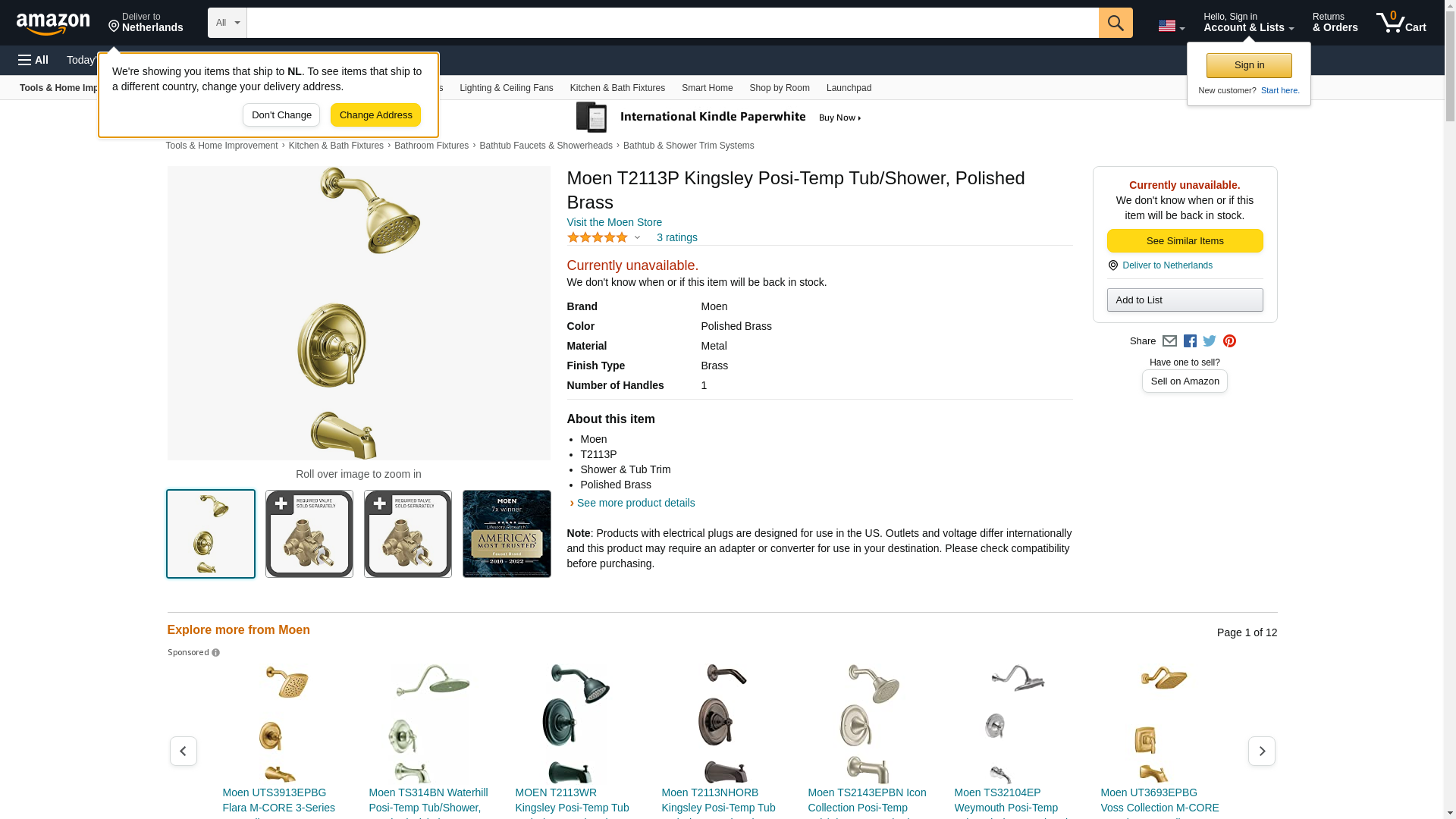 Moen T2113P Kingsley Posi-Temp Tub/Shower, Polished Brass