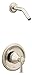 Moen T2312NH Features: Covered under Moen's limited lifetime residential warranty and 5 year commercial warranty Premier finishing process finishes will resist corrosion and tarnishing through everyday use Single function cartridge one handle controls both volume and temperature Posi-Temp pressure balancing valve cartridge Shower Package Includes: Valve trim and shower arm Designed to easily install with standard U.S. plumbing connections ADA compliant Moen T2312NH Technologies / Benefits: PosiTemp Valve: A pressure balancing valve that maintains water temperature within 3° F. Built-in temperature limit stops allow you to control how far the handle rotates, in effect controlling the range of water temperature. The PosiTemp offers the best water flow available for any comparable valve. Moen T2312NH Specifications: Temperature dial swings 270 degrees Escutcheon Diameter: 6-13/16" Includes pre-set safety stop with override capability Rough-in valve is sold separately (when adding to cart, valve will be offered)