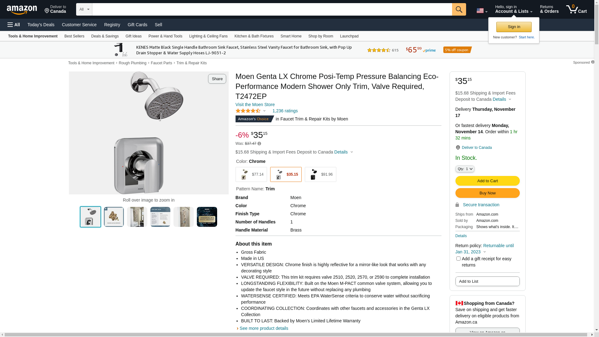 | Manufacturer | Moen |