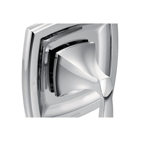 Crisp edges and uncomplicated style features give the Voss collection an ageless, yet fashion-forward, presence. Each silhouette brings a confident transitional style to the bath. This chrome Posi-Temp valve trim was built to last by MOEN. Designed for use in your bath. This trim kit requires MOEN valve 2510, 2520, 2570, 2580, or 2590 to complete installation.