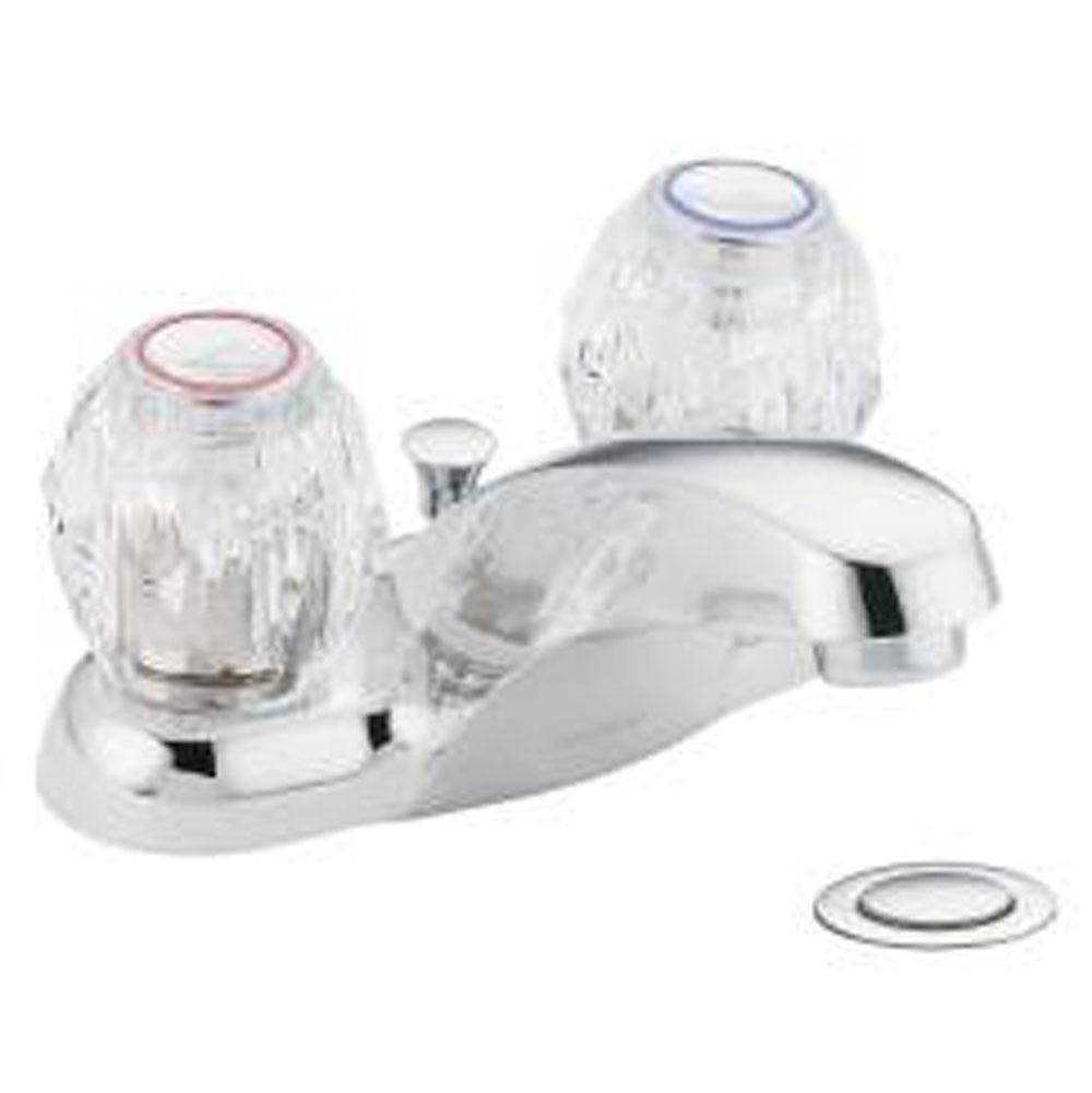 Enjoy a discount deal on the Moen 64919 Chateau Two-Handle Low Arc Bathroom Faucet, Chrome via the PlumbersStock store - take advantage of wholesale Moen supply.