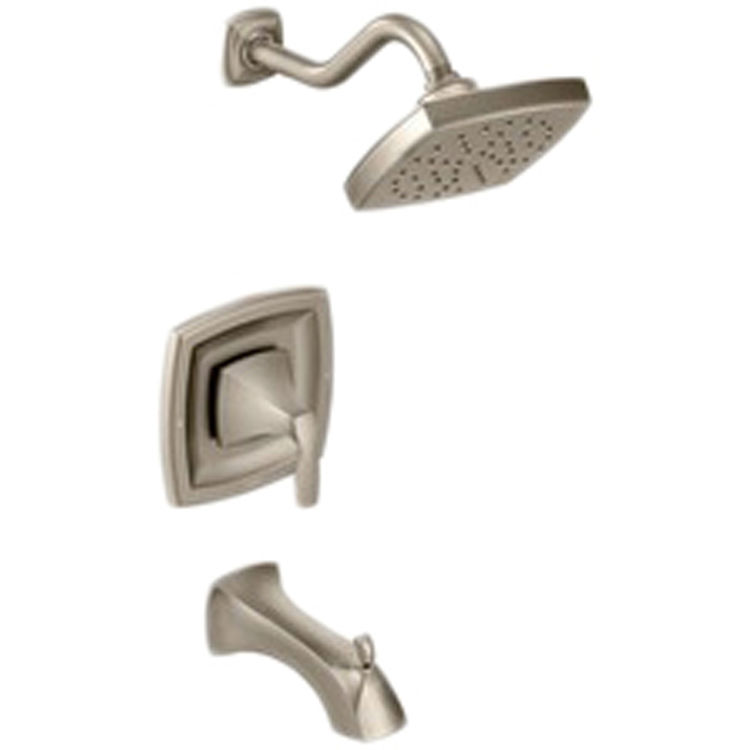 The Voss Tub and Shower Faucet Moentrol Trim Kit from MOEN puts the finishing touch on your transitional bath buildout. Featuring crisply honed edges and a lustrous brushed nickel finish, it makes a chic style statement. A square rain showerhead spanning 6 in. offers exceptional single-spray coverage, harnessing self-pressurizing MOEN Immersion technology to accelerate water flow. Leveraging the functionality of a compatible Moentrol valve, the single-handle faucet lets you adjust water volume and temperature to match your preferred flow and heat intensity. An innovative pressure-balancing feature in the valve helps the temperature remain steady even when other water sources in the home are triggered. Part of the M-PACT common valve system, this kit makes it easy to substitute the trim without tweaking the plumbing should your future style preference change. The sleek brushed nickel finish is laden with a LifeShine protectant to guard against tarnishing, corroding or flaking, backed by a lifetime limited warranty to underscore its durability. This kit requires MOEN valve 3510, 3520 or 3570 (sold separately) to complete installation.