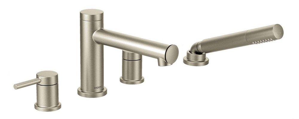 Moen T394BN Align 2-Handle Deck Mount Modern Roman Tub Faucet Trim Kit, Valve Required, Including Single Function Handshower, Brushed Nickel, 3.62 x 11.12 x 18.62 inches