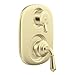 The simple beauty of Monticello provides faucet, tub, showering and accessory options to create a coordinated look in any home. This Polished brass Moentrol valve trim is manufactured by Moen, the #1 faucet brand in North America. This product features a polished brass finish offers a bright, highly reflective look for timeless style.