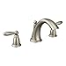 This MOEN trim kit features a two-handle Roman tub faucet in an elegant brushed nickel finish to make your bath area strikingly beautiful and highly functional. The exquisite Brantford fixture has a graciously curved low-arc spout that rises 6 in. high and reaches 6-1/2 in. over your tub for ample clearance. Sleek and chic, the smooth-operating lever handles operate independently to dispense up to 13 GPM for quick fill-ups. Ornate architectural styling and a globe finial lend an upscale look to your powder room, while the LifeShine protectant inhibits flaking, corroding and tarnishing of the brushed nickel finish. Part of the M-PACT common valve system, this set makes it easy to substitute the trim without tweaking the plumbing should your future style preference change. This kit requires MOEN valve 4792, 4793, 4794, 4796, 4797 or 4798 (sold separately) to complete installation.
