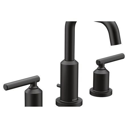 Moen Gibson Matte Black Two-Handle Widespread High Arc Modern Bathroom Sink Faucet, Modern Bathroom Faucet for Three Hole Bath Sinks (Valve Required), T6142BL