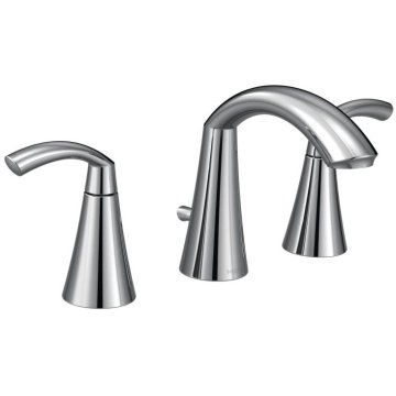 Shop and save on the Moen Glyde Chrome Two-Handle High Arc Widespread Bathroom Faucet with Lever Handles, 1.2 GPM - T6173 from the PlumbersStock pros - offering affordable Moen faucets.