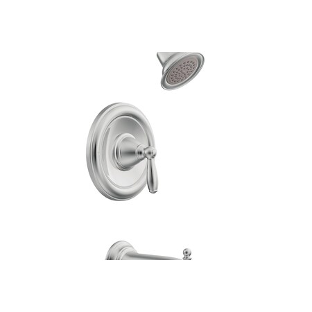 Moen Brantford Chrome Pressure Balancing Modern Bathtub and Shower Trim Kit with Shower Head, Shower Handle, and Tub Spout, Shower Faucet Set (Posi-Temp Valve Required), T62153EP