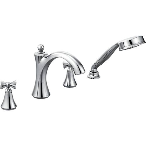 Moen T658 Wynford Two-Handle Diverter Roman Tub Faucet Includes Hand Shower, Valve Required, Chrome