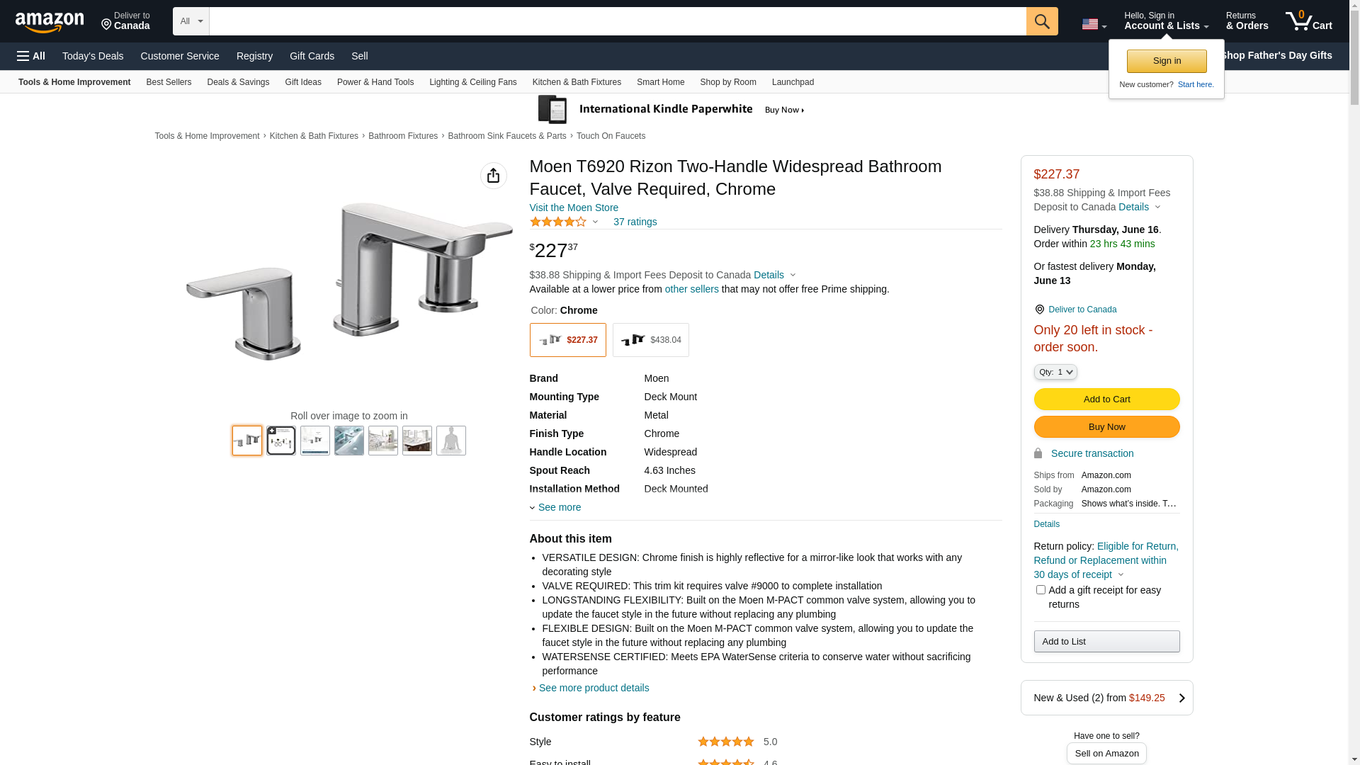 ![]() faucet-warehouse.com | T6920 | 1 | -2 | 1 | 1 @ $226.56 |