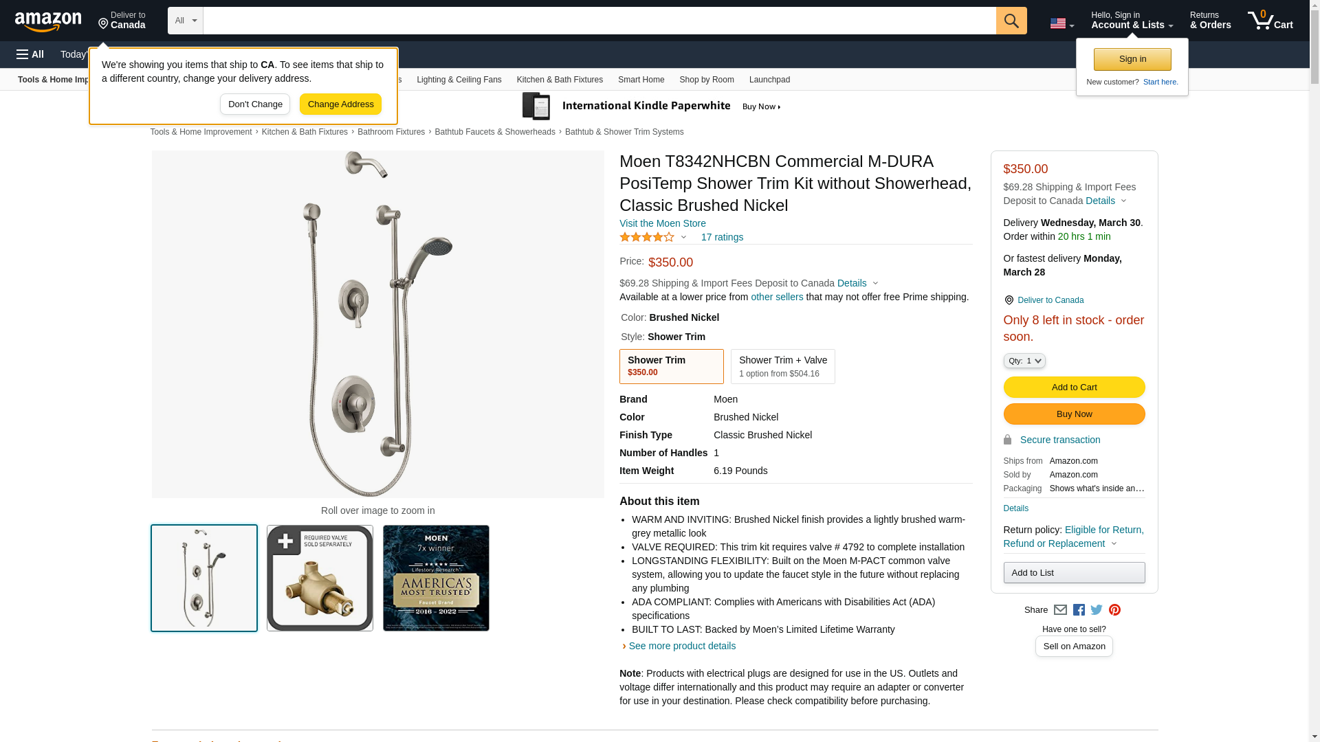 ![]() Bath1 | MOE_T8342NHCBN | 1 | 1 | 1 @ $372.12 | |